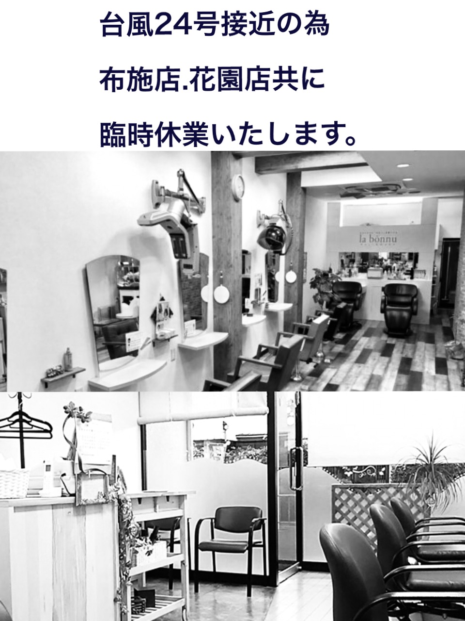 布施 美容室 ラボンヌの平井です。だいぶ、今回もすごい台風が来るようですね。本日臨時休業致します。